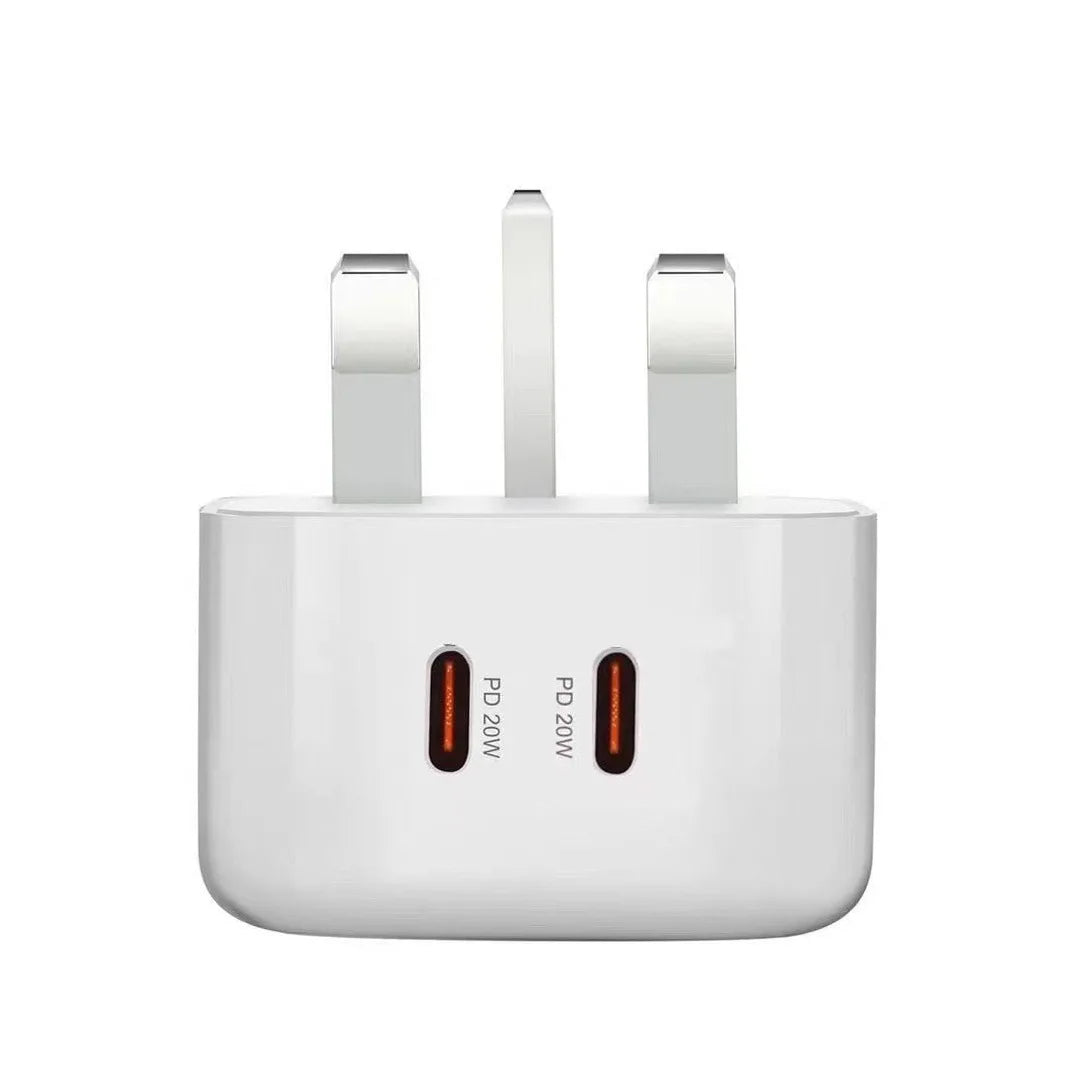 40W Dual USB-C PD Fast Wall Charger for iPhone 11-15 iPad Xiaomi Huawei