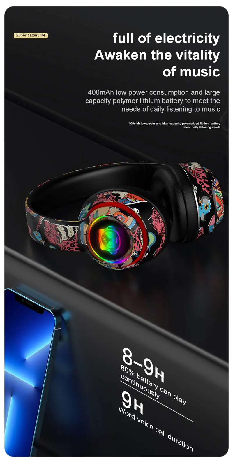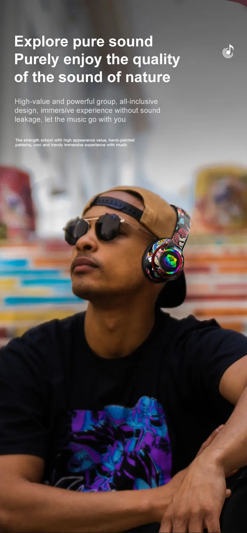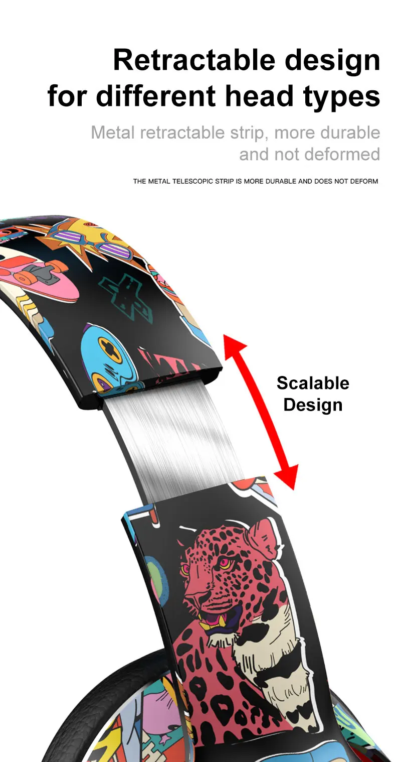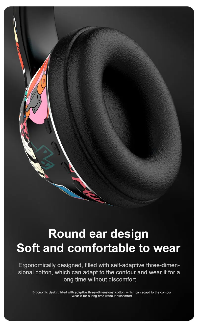 Graffiti Bluetooth 5.1 Gaming Headset Wireless DJ Headphones Mic, RGB Lights TF Card Support"
