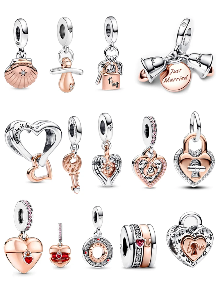 Rose Gold Heart Padlock Key Charm 925 Sterling Silver Bracelet Jewellery Gift