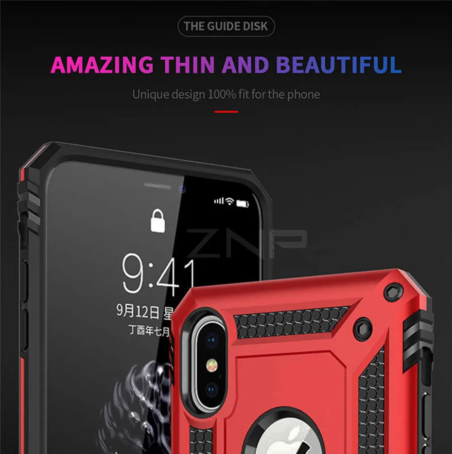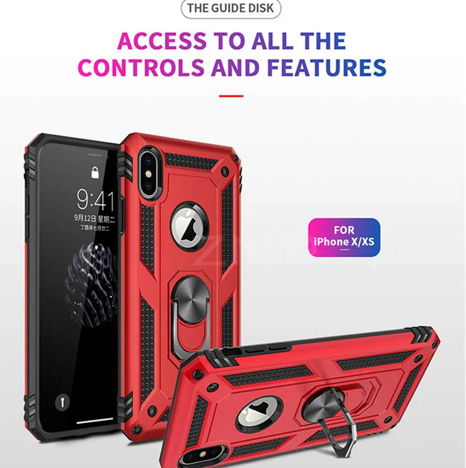 Shockproof Armor Holder Case For iPhone X XS Max XR 7 6 Cases Magnetic Ring Phone Cover For iPhone 6 6s 7 8 Plus Holder Case