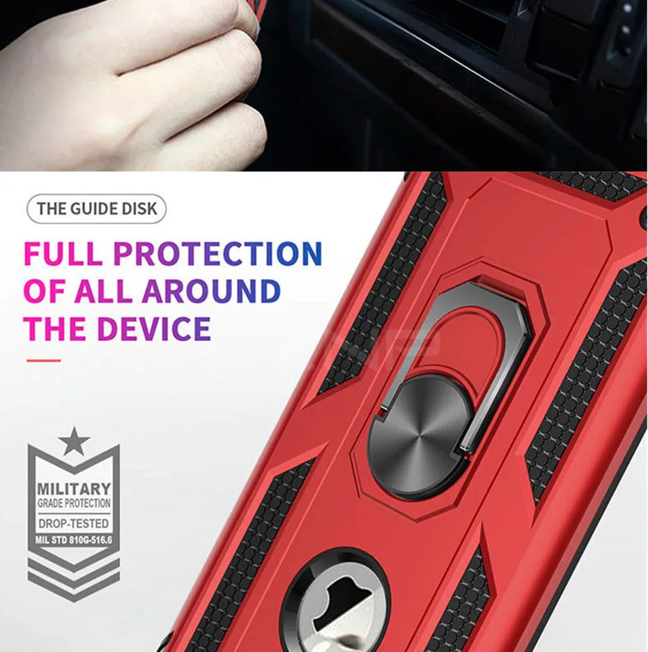 Protect your iPhone with this shockproof heavy-duty case, designed to offer maximum protection and style. This case features a built-in ring holder, kickstand, and magnetic car mount compatibility, making it perfect for everyday use.