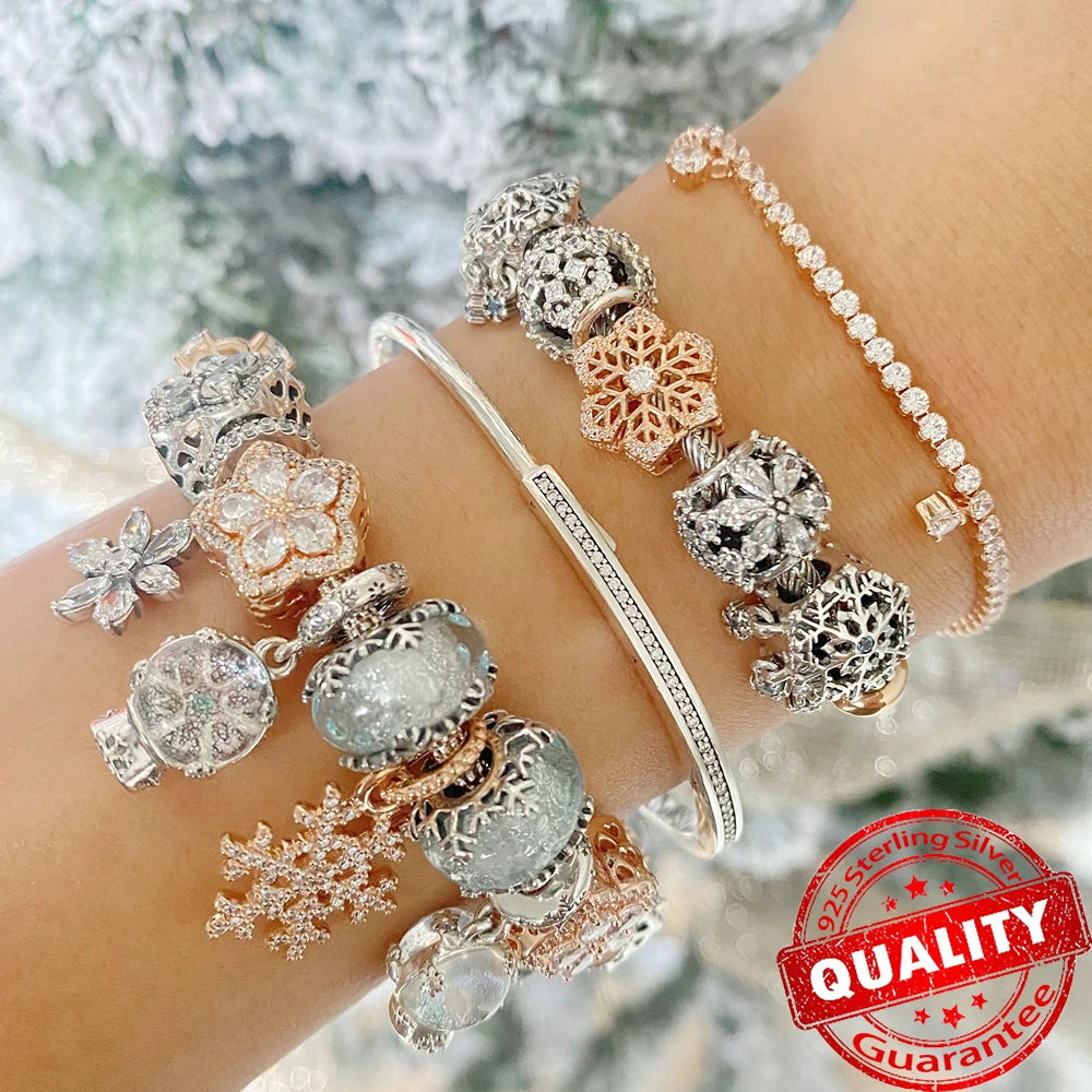 Rose Gold Triple-Row Cherry Blossom Dangle Charm for Silver Bracelet