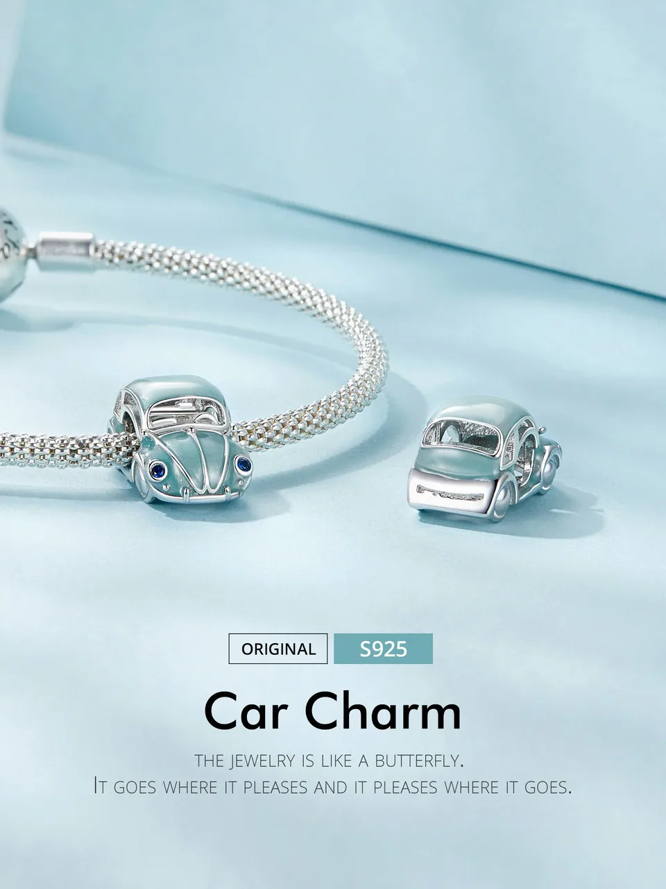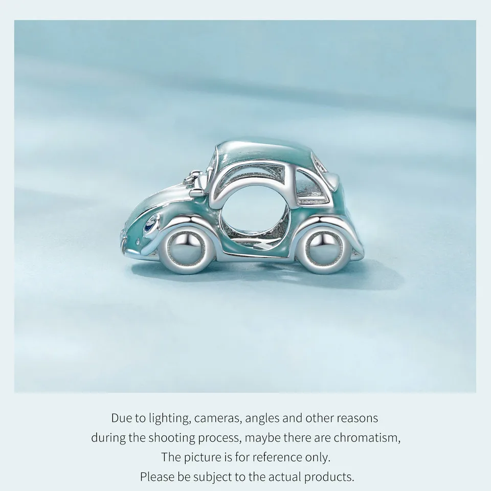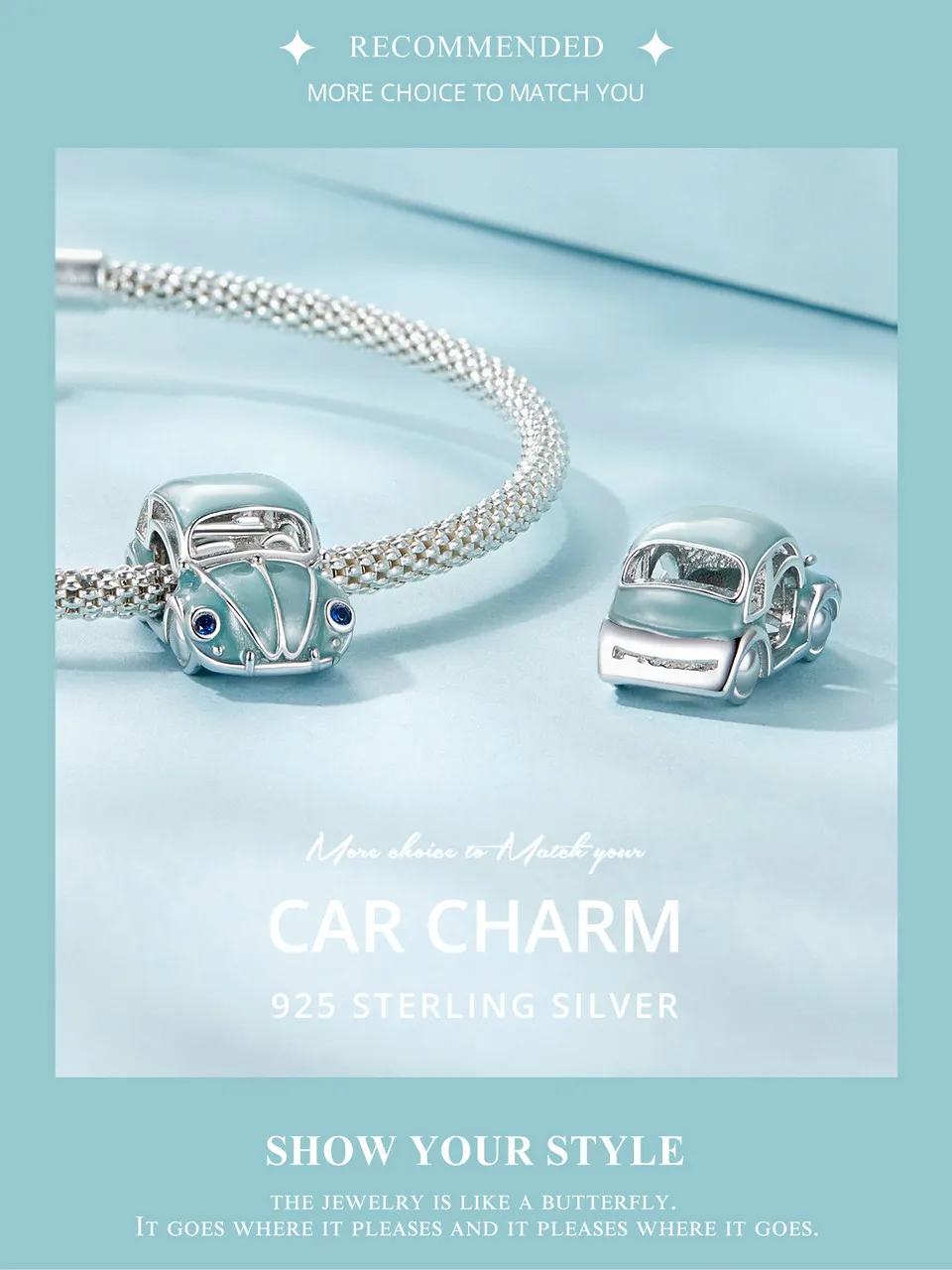 925 Sterling Silver Pink Bicycle Car Charm Bead Pendant for Bracelet DIY