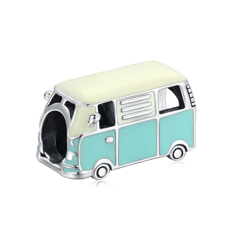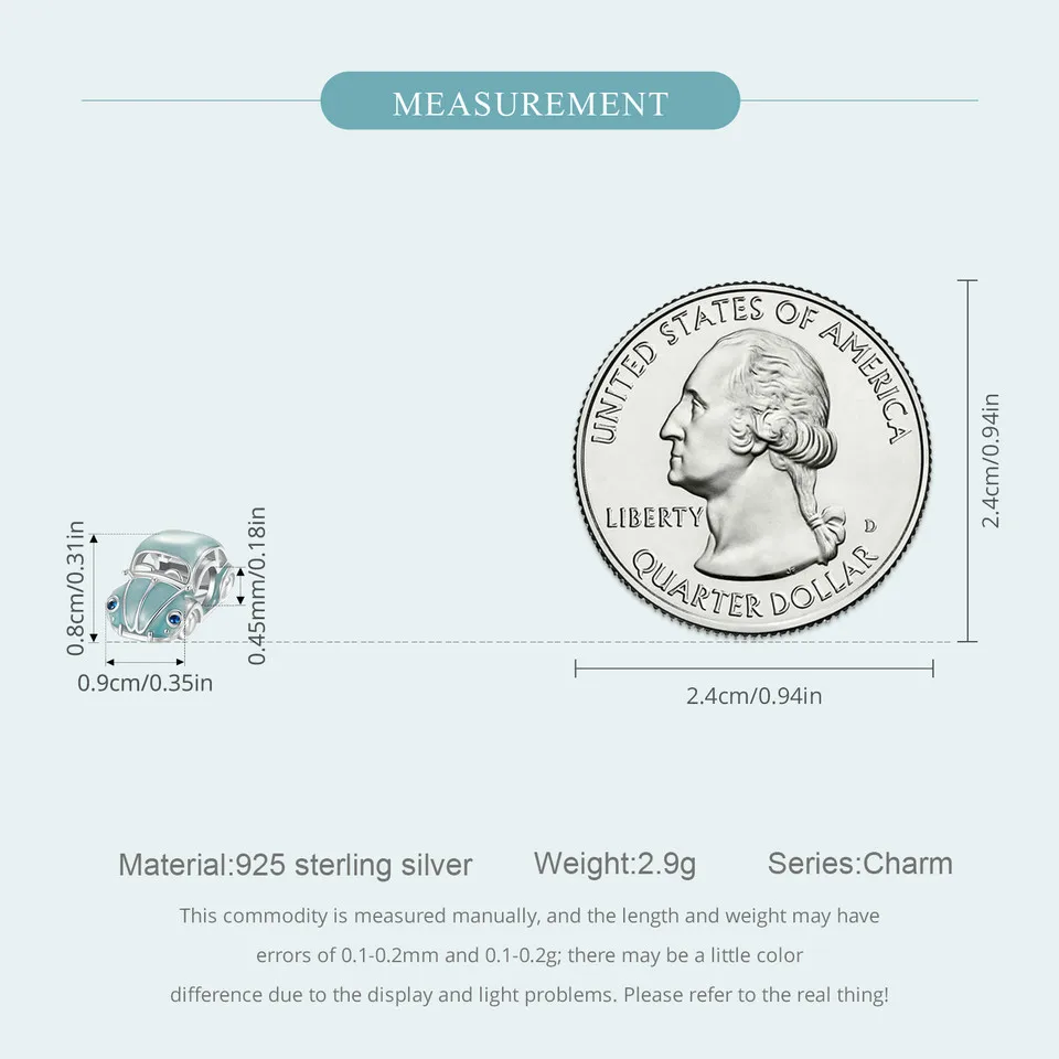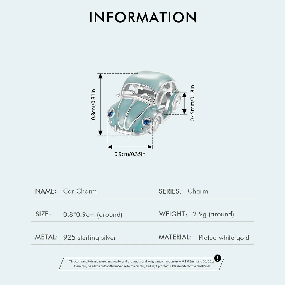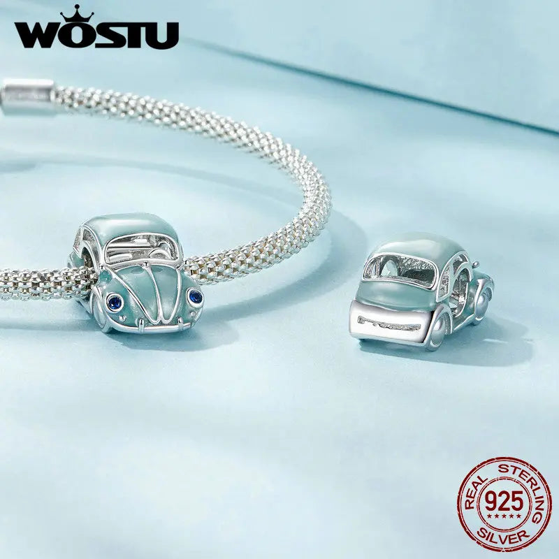 925 Sterling Silver Pink Bicycle Car Charm Bead Pendant for Bracelet DIY